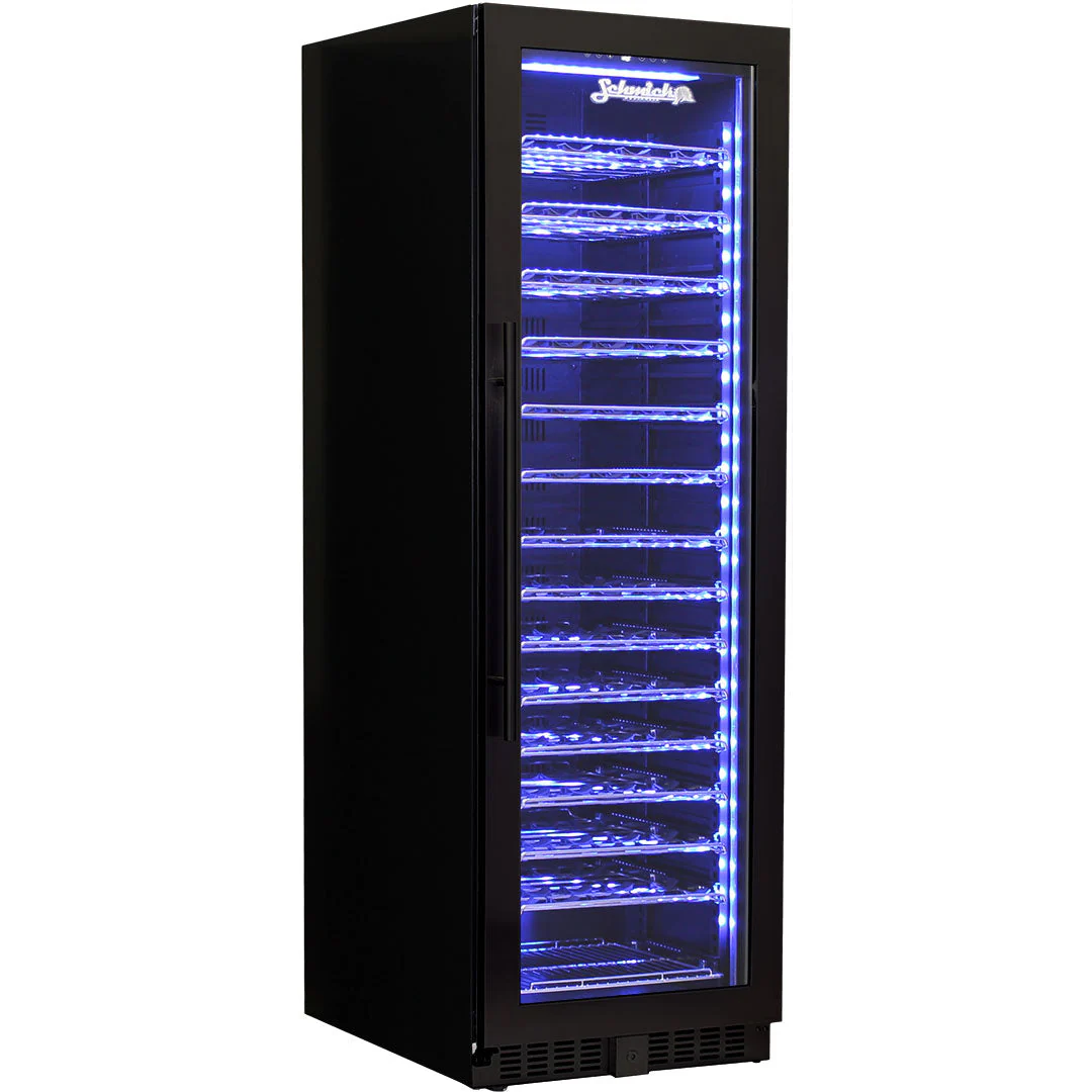 A Stylish Reliable Upright Quiet Running Glass Door Wine Fridge With Quality Brand Name Parts And Plenty Of Features. The Slimline Door Frame And Soft Blue Led Lighting Make It A Real Showpiece For Any Entertaining Area
