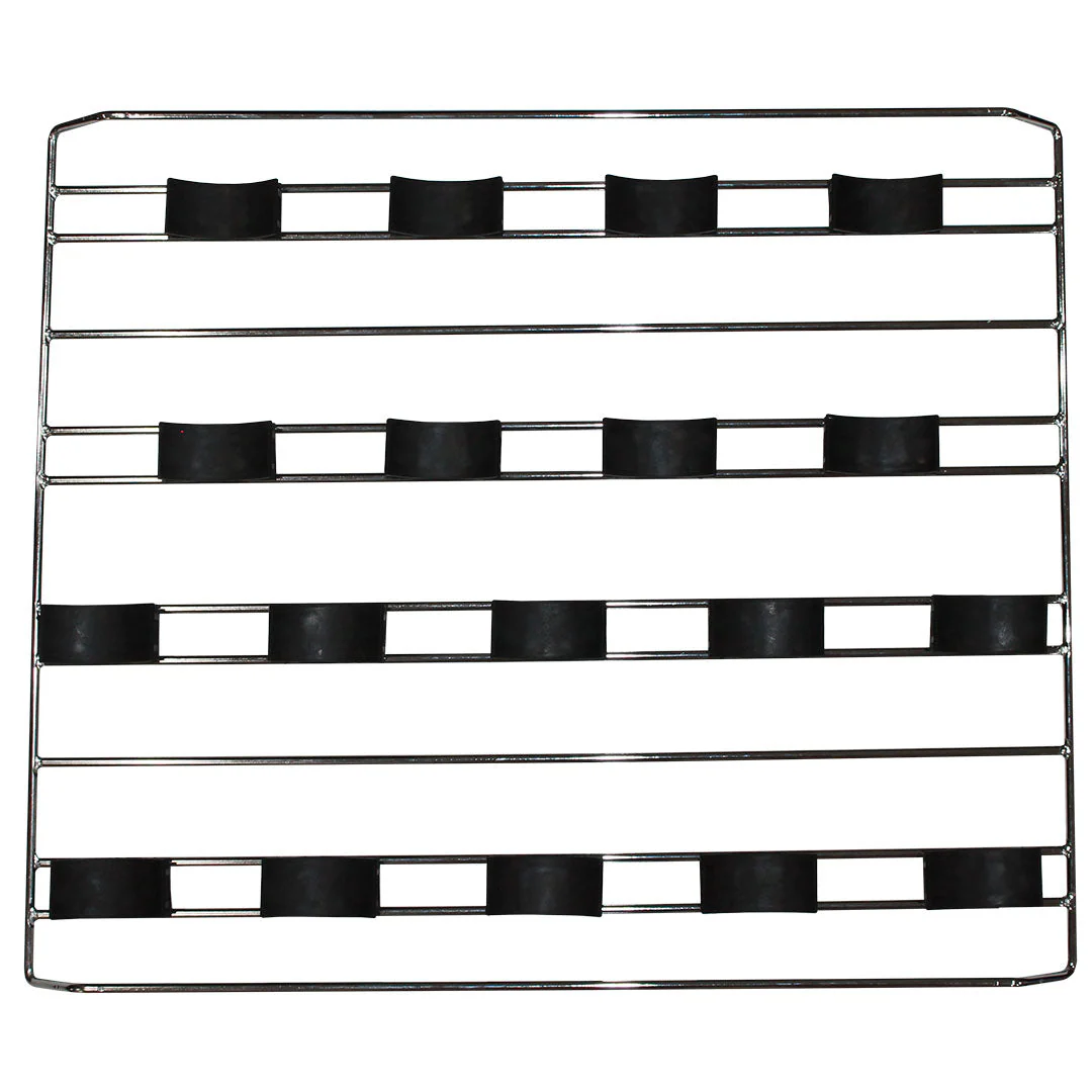 Chromed wine shelf to suit bar fridges, these come with special patented sliding saddles that allow you to add any size wine bottle without touching.